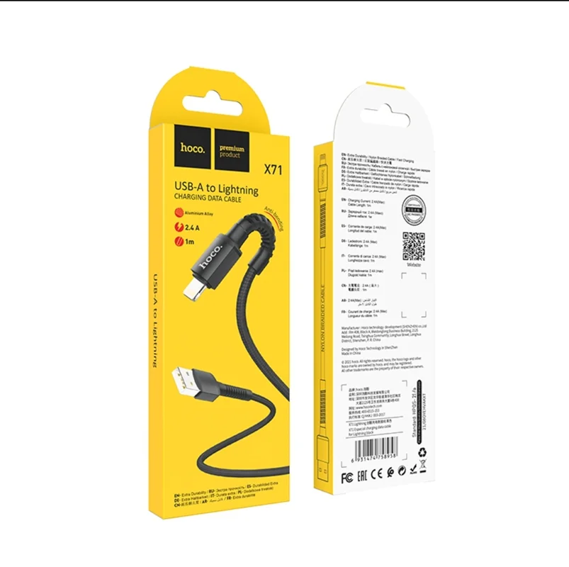 کابل شارژرهای تولید شده توسط شرکت صاحب نام هوکو با بالاترین استانداردها و متریال ساخت باکیفیت و درجه یک در انواع مدلها (فست و معمولی) جایگاه خاصی را در بازار لوازم جانبی موبایل و کاربران ایرانی به خودش اختصاص داده است. کابل شارژر مدل X71 هوکو یکی از خاص ترین و باکیفیت ترین کابلهایی است که توسط این شرکت تولید و روانه بازار شده است. کابل شارژ هوکو از هسته داخلی (45/0.08)*2+(14/0.08) تشکیل شده که قادر است گوشیهای تلفن همراه را با شدت جریان 2.4 آمپر شارژ کند. روکش کابل X71 هوکو بافته شده از الیاف کنف درجه یک می باشد. شرکت هوکو در ساخت این کابل استانداردهای سلامت را رعایت کرده و از هیچ ماده سمی استفاده نکرده است. X71 هوکو از متریال ساخت باکیفیت در بدنه و کانکتورهای آن بهره برده که مقاومت و استحکام بالایی در برابر کشیدگی و گره خوردگی از خود نشان می دهد و بسیار مقاوم می باشد. این مدل به دلیل داشتن قابلیت ANTI BENDING بسیار منعطف می باشد. همچنین X71 از قابلیت شارژ سریع و انتقال اطلاعات و دیتا پشتیبانی می کند. طول این کابل 100 سانتیمتر و وزن آن 26 گرم می باشد. این کابل به دلیل داشتن تمام استانداردهای بین المللی یکی از بهترین نمونه های خود در بازار دیجیتال می باشد.