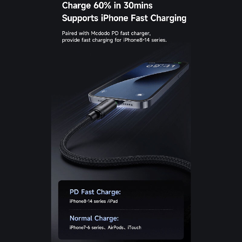 کابل تایپ سی به لایتنینگ فست شارژ 36 وات مک دودو Mcdodo CA-694 طول 1.2 متر