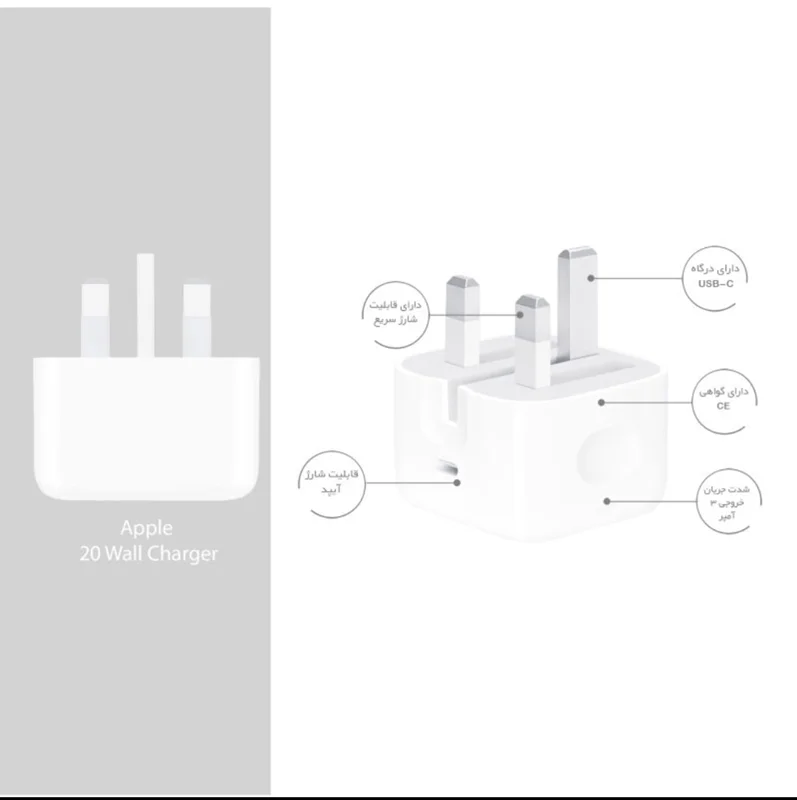 شارژر ۲۰ وات اپل مدل B/A پارت نامبر اروپا