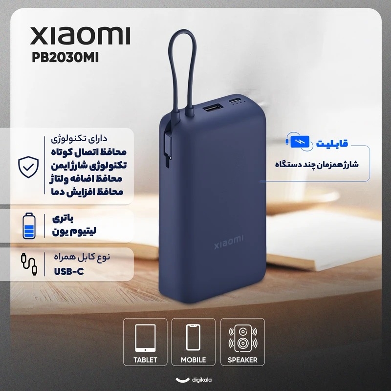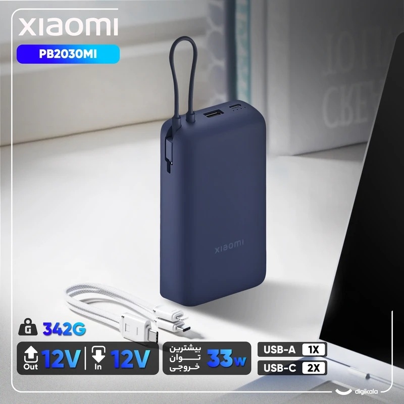 پاوربانک شیائومی PB2030 با ظرفیت 20000 میلی آمپر ساعت و قدرت 33 وات، همراهی مطمئن برای سفرهای شماست! با سرعت شارژ بالا و طراحی کم حجم، این پاوربانک بهترین انتخاب برای تامین انرژی دستگاههای الکترونیکی شماست. حالا همیشه آماده بمانید و از تجربهای بینظیر لذت ببرید. شارژ سریع، سبک و کارآمد!