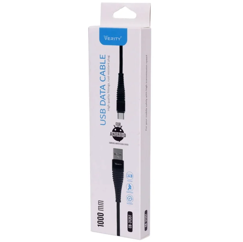کابل تایپ سی فست شارژ Verity CB-3135T 1m: این کابل به طول 100 سانتیمتر از جنس پلاستیک باکیفیت و روکشی از الیاف بافته شده با مقاومت بالا در برابر آسیبهای احتمالی توسط شرکت وریتی تولید شده است.